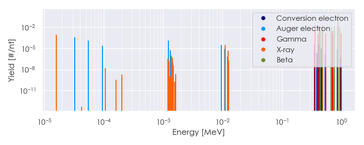 Spectra source: ICRP Publication 107: Nuclear Decay Data for Dosimetric Calculations. Ann. ICRP 2008, 38 (3).