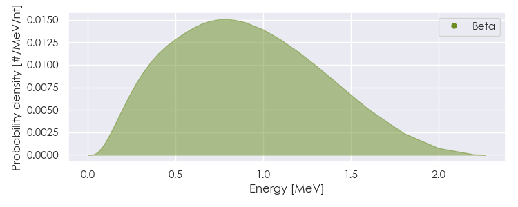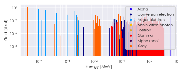 Spectra source: ICRP Publication 107: Nuclear Decay Data for Dosimetric Calculations. Ann. ICRP 2008, 38 (3).