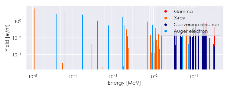 Spectra source: ICRP Publication 107: Nuclear Decay Data for Dosimetric Calculations. Ann. ICRP 2008, 38 (3).