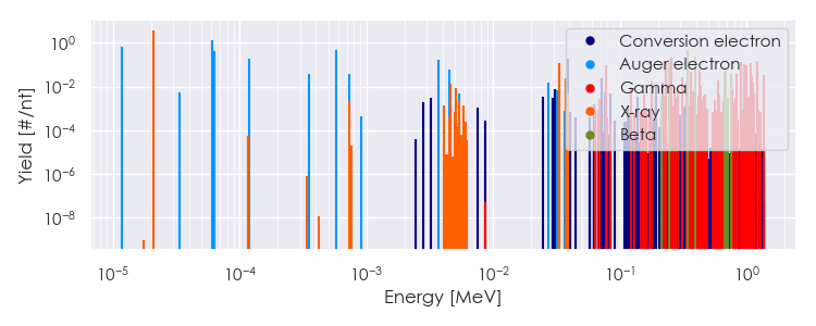 Spectra source: ICRP Publication 107: Nuclear Decay Data for Dosimetric Calculations. Ann. ICRP 2008, 38 (3).