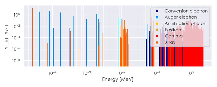 Spectra source: ICRP Publication 107: Nuclear Decay Data for Dosimetric Calculations. Ann. ICRP 2008, 38 (3).