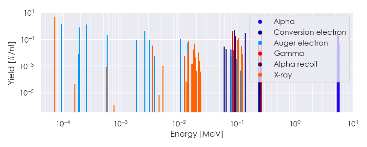Spectra source: ICRP Publication 107: Nuclear Decay Data for Dosimetric Calculations. Ann. ICRP 2008, 38 (3).