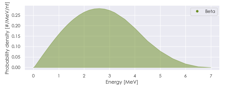 Spectra source: ICRP Publication 107: Nuclear Decay Data for Dosimetric Calculations. Ann. ICRP 2008, 38 (3).