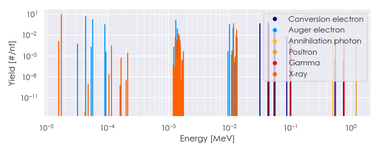 Spectra source: ICRP Publication 107: Nuclear Decay Data for Dosimetric Calculations. Ann. ICRP 2008, 38 (3).