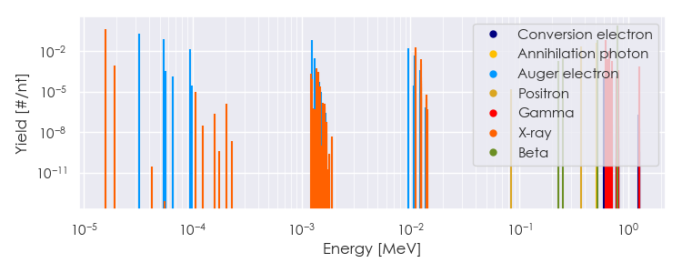 Spectra source: ICRP Publication 107: Nuclear Decay Data for Dosimetric Calculations. Ann. ICRP 2008, 38 (3).
