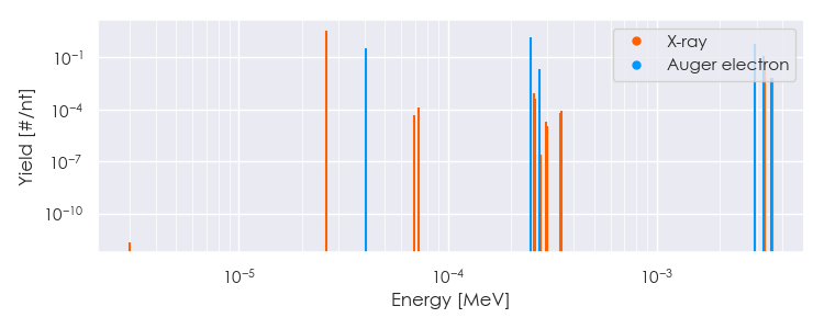 Spectra source: ICRP Publication 107: Nuclear Decay Data for Dosimetric Calculations. Ann. ICRP 2008, 38 (3).