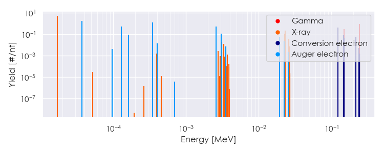 Spectra source: ICRP Publication 107: Nuclear Decay Data for Dosimetric Calculations. Ann. ICRP 2008, 38 (3).