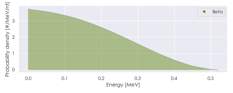 Spectra source: ICRP Publication 107: Nuclear Decay Data for Dosimetric Calculations. Ann. ICRP 2008, 38 (3).