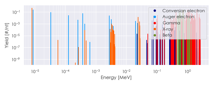 Spectra source: ICRP Publication 107: Nuclear Decay Data for Dosimetric Calculations. Ann. ICRP 2008, 38 (3).