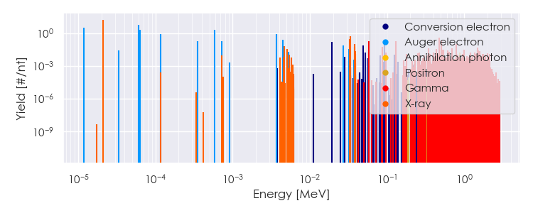 Spectra source: ICRP Publication 107: Nuclear Decay Data for Dosimetric Calculations. Ann. ICRP 2008, 38 (3).