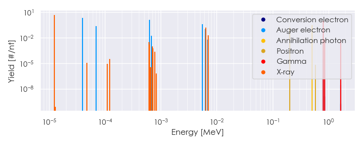 Spectra source: ICRP Publication 107: Nuclear Decay Data for Dosimetric Calculations. Ann. ICRP 2008, 38 (3).