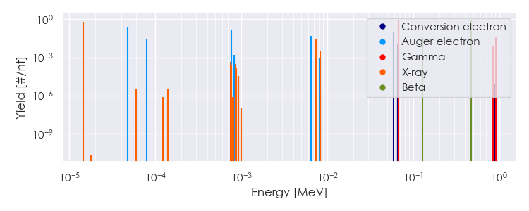 Spectra source: ICRP Publication 107: Nuclear Decay Data for Dosimetric Calculations. Ann. ICRP 2008, 38 (3).