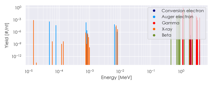 Spectra source: ICRP Publication 107: Nuclear Decay Data for Dosimetric Calculations. Ann. ICRP 2008, 38 (3).