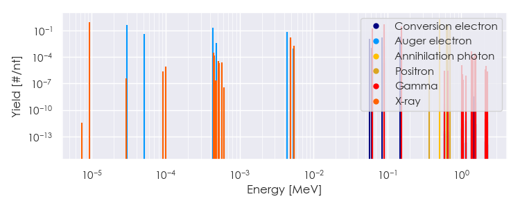 Spectra source: ICRP Publication 107: Nuclear Decay Data for Dosimetric Calculations. Ann. ICRP 2008, 38 (3).