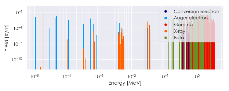 Spectra source: ICRP Publication 107: Nuclear Decay Data for Dosimetric Calculations. Ann. ICRP 2008, 38 (3).