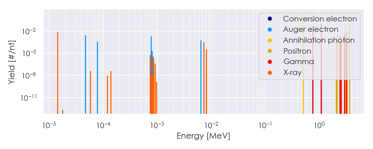 Spectra source: ICRP Publication 107: Nuclear Decay Data for Dosimetric Calculations. Ann. ICRP 2008, 38 (3).