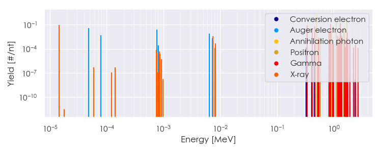 Spectra source: ICRP Publication 107: Nuclear Decay Data for Dosimetric Calculations. Ann. ICRP 2008, 38 (3).