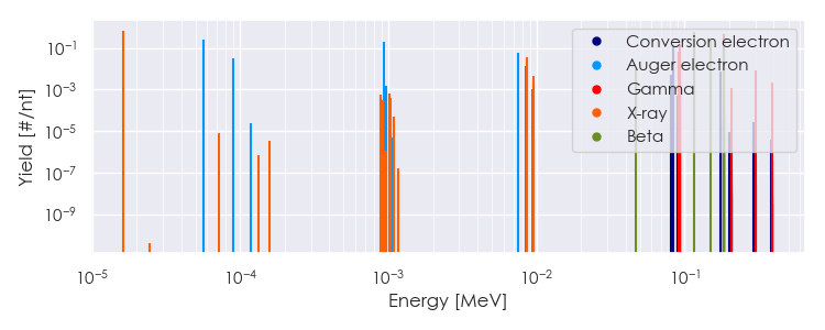 Spectra source: ICRP Publication 107: Nuclear Decay Data for Dosimetric Calculations. Ann. ICRP 2008, 38 (3).