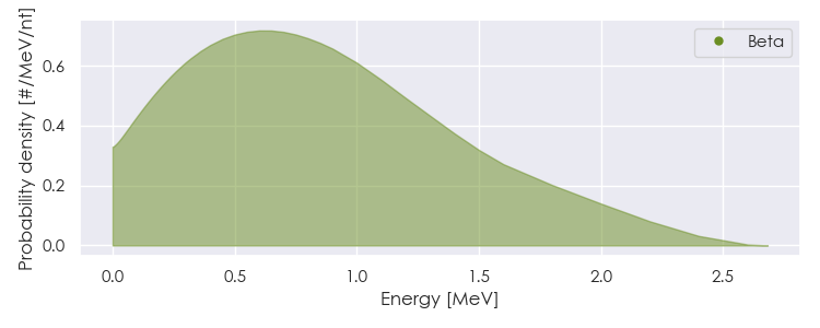 Spectra source: ICRP Publication 107: Nuclear Decay Data for Dosimetric Calculations. Ann. ICRP 2008, 38 (3).