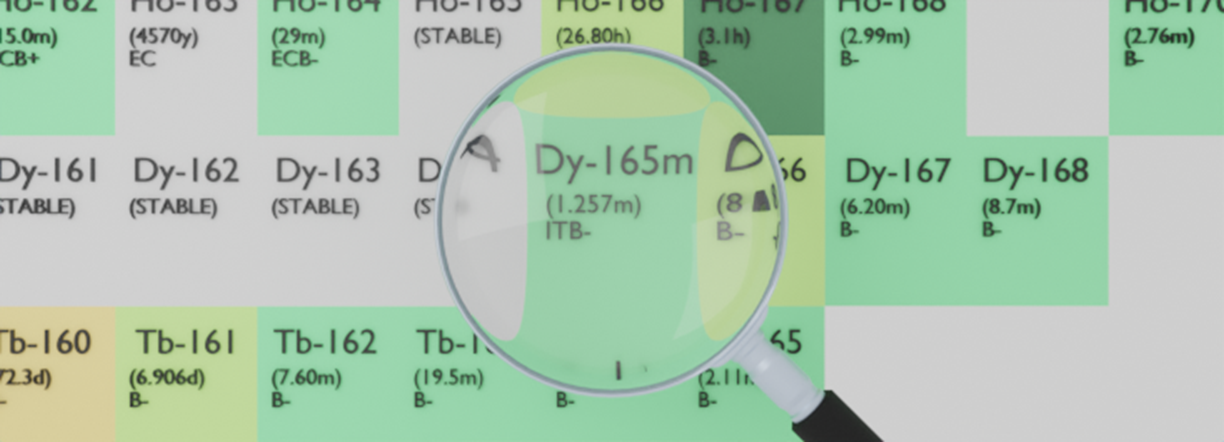 Daughters: Dy-165 (97.8%), Ho-165 (2.24%)