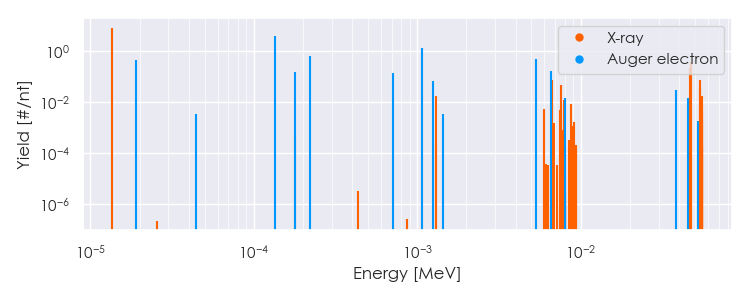 Spectra source: ICRP Publication 107: Nuclear Decay Data for Dosimetric Calculations. Ann. ICRP 2008, 38 (3).