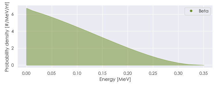 Spectra source: ICRP Publication 107: Nuclear Decay Data for Dosimetric Calculations. Ann. ICRP 2008, 38 (3).