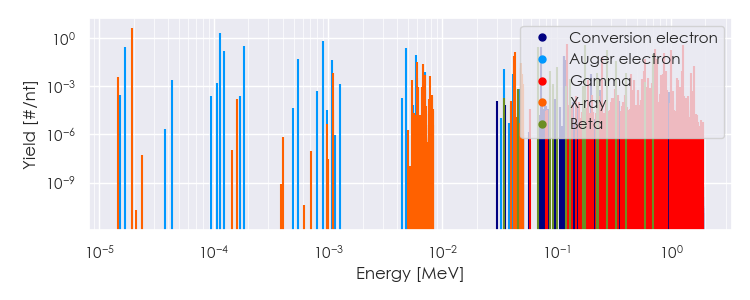 Spectra source: ICRP Publication 107: Nuclear Decay Data for Dosimetric Calculations. Ann. ICRP 2008, 38 (3).
