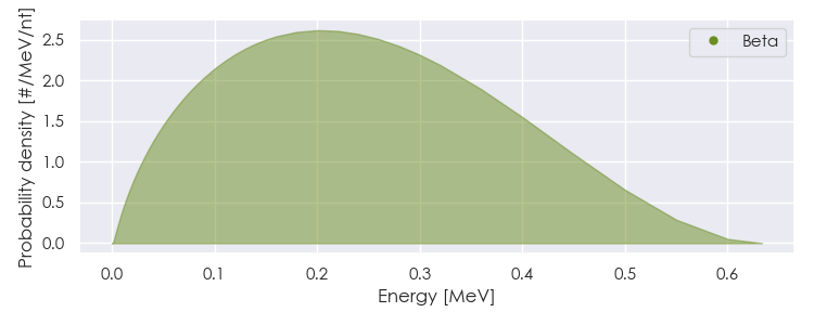 Spectra source: ICRP Publication 107: Nuclear Decay Data for Dosimetric Calculations. Ann. ICRP 2008, 38 (3).