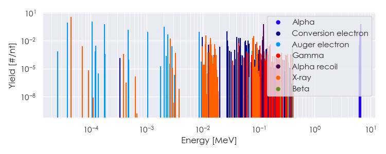 Spectra source: ICRP Publication 107: Nuclear Decay Data for Dosimetric Calculations. Ann. ICRP 2008, 38 (3).