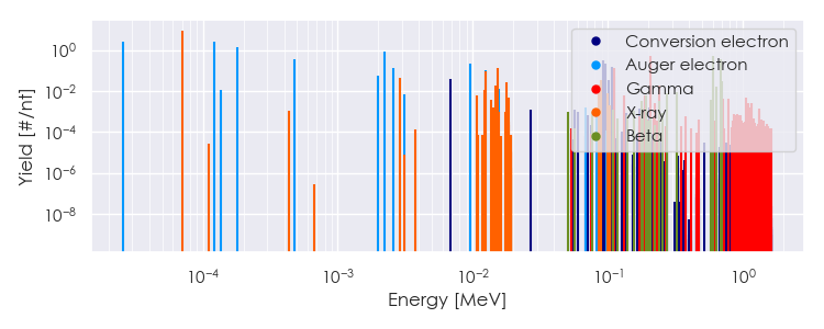 Spectra source: ICRP Publication 107: Nuclear Decay Data for Dosimetric Calculations. Ann. ICRP 2008, 38 (3).