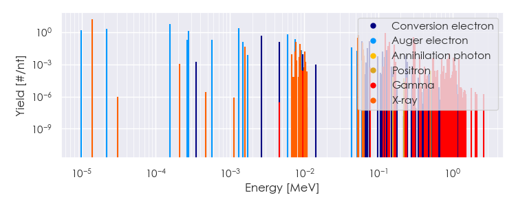 Spectra source: ICRP Publication 107: Nuclear Decay Data for Dosimetric Calculations. Ann. ICRP 2008, 38 (3).