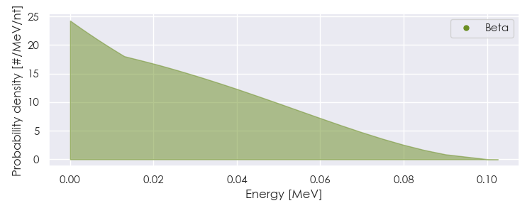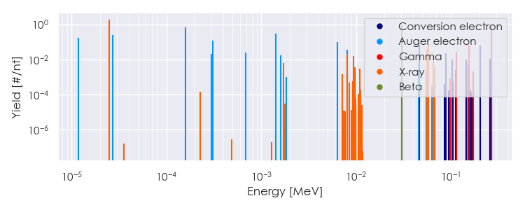 Spectra source: ICRP Publication 107: Nuclear Decay Data for Dosimetric Calculations. Ann. ICRP 2008, 38 (3).