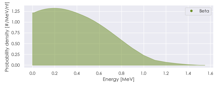 Spectra source: ICRP Publication 107: Nuclear Decay Data for Dosimetric Calculations. Ann. ICRP 2008, 38 (3).
