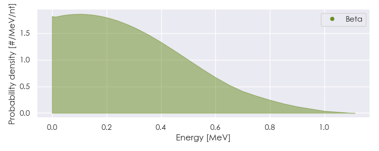 Spectra source: ICRP Publication 107: Nuclear Decay Data for Dosimetric Calculations. Ann. ICRP 2008, 38 (3).