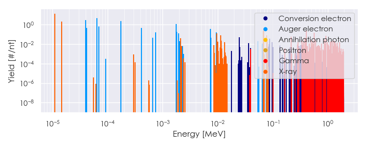Spectra source: ICRP Publication 107: Nuclear Decay Data for Dosimetric Calculations. Ann. ICRP 2008, 38 (3).