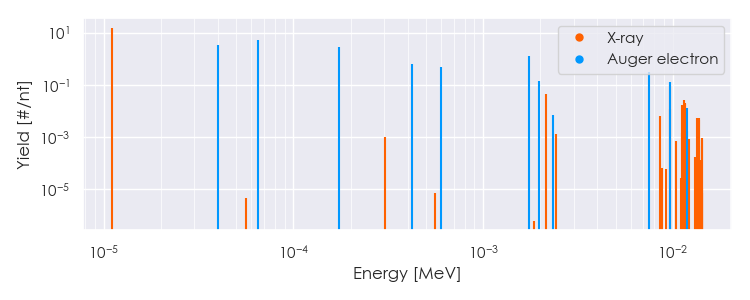 Spectra source: ICRP Publication 107: Nuclear Decay Data for Dosimetric Calculations. Ann. ICRP 2008, 38 (3).