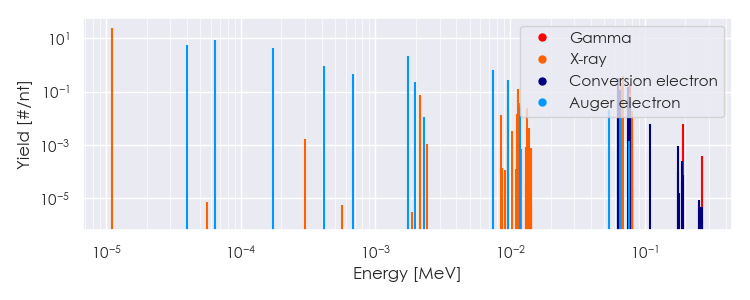Spectra source: ICRP Publication 107: Nuclear Decay Data for Dosimetric Calculations. Ann. ICRP 2008, 38 (3).