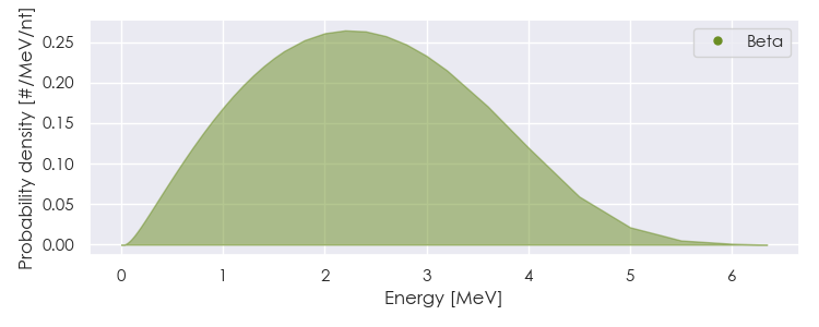 Spectra source: ICRP Publication 107: Nuclear Decay Data for Dosimetric Calculations. Ann. ICRP 2008, 38 (3).