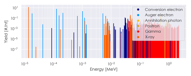 Spectra source: ICRP Publication 107: Nuclear Decay Data for Dosimetric Calculations. Ann. ICRP 2008, 38 (3).