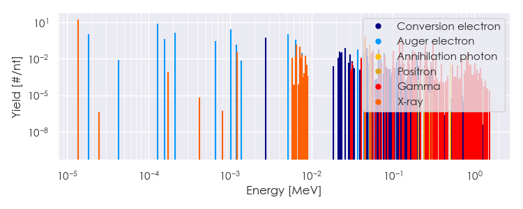 Spectra source: ICRP Publication 107: Nuclear Decay Data for Dosimetric Calculations. Ann. ICRP 2008, 38 (3).
