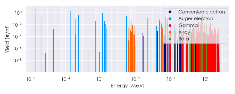 Spectra source: ICRP Publication 107: Nuclear Decay Data for Dosimetric Calculations. Ann. ICRP 2008, 38 (3).