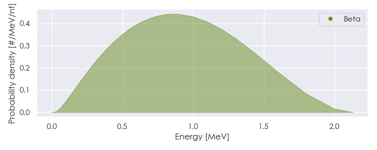 Spectra source: ICRP Publication 107: Nuclear Decay Data for Dosimetric Calculations. Ann. ICRP 2008, 38 (3).