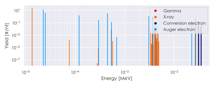 Spectra source: ICRP Publication 107: Nuclear Decay Data for Dosimetric Calculations. Ann. ICRP 2008, 38 (3).
