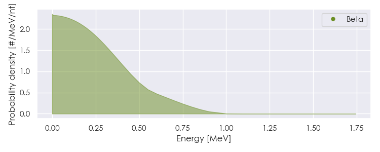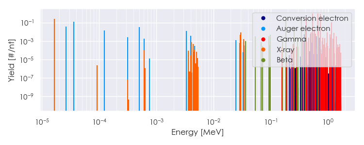 Spectra source: ICRP Publication 107: Nuclear Decay Data for Dosimetric Calculations. Ann. ICRP 2008, 38 (3).