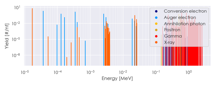Spectra source: ICRP Publication 107: Nuclear Decay Data for Dosimetric Calculations. Ann. ICRP 2008, 38 (3).