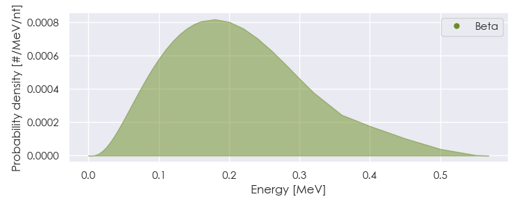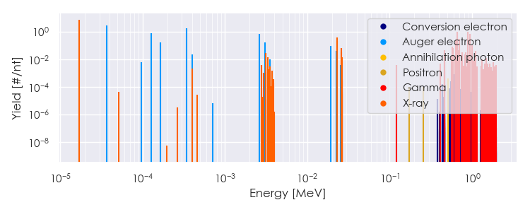 Spectra source: ICRP Publication 107: Nuclear Decay Data for Dosimetric Calculations. Ann. ICRP 2008, 38 (3).