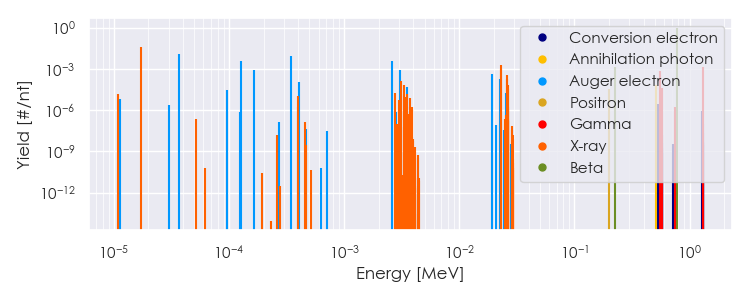 Spectra source: ICRP Publication 107: Nuclear Decay Data for Dosimetric Calculations. Ann. ICRP 2008, 38 (3).