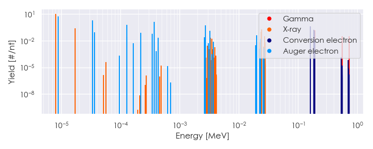 Spectra source: ICRP Publication 107: Nuclear Decay Data for Dosimetric Calculations. Ann. ICRP 2008, 38 (3).