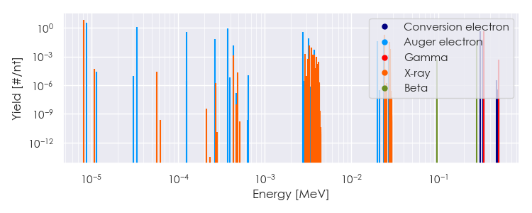 Spectra source: ICRP Publication 107: Nuclear Decay Data for Dosimetric Calculations. Ann. ICRP 2008, 38 (3).