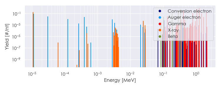 Spectra source: ICRP Publication 107: Nuclear Decay Data for Dosimetric Calculations. Ann. ICRP 2008, 38 (3).